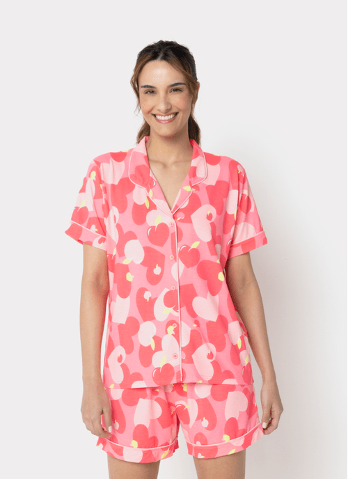 Pijama Manga Curta Viscose Feminino Vaca Romântica